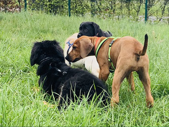 Besonneg an der Welpenzäit a Junghundezäit ass et wichteg, engem Hond déi néideg Kompetenzen, wéi Selbstregulatioun, Impulskontroll, Gedold... mat op de Wee ze ginn. Awer och Themen, wéi d'Sozialisatioun an d'Expositioun si wichteg. Da ginn och nach kleng Übungen fir d'Leinefürung, Réckruff, etc. ëmgesat. Dëst kann een alles wonnerbar an enger klenger Grupp zesummen mat anere Welpebesëtzer.